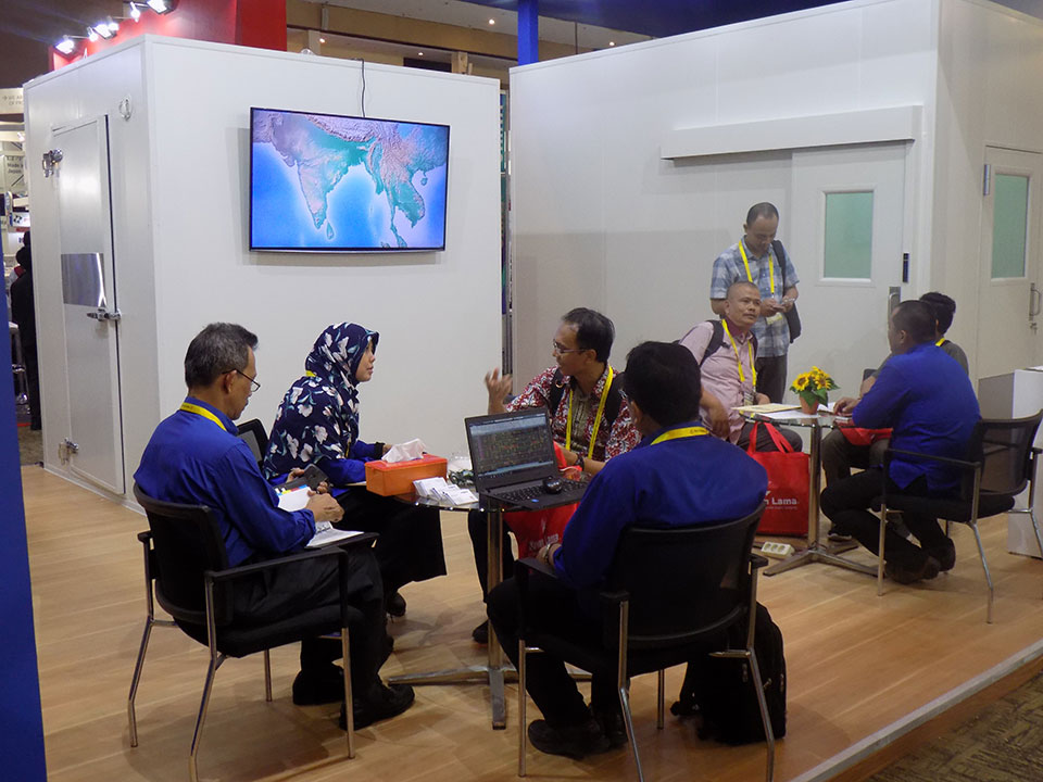 Our COLD STORAGE mockup were designed with sliding door and swing door. Our visitor, mostly from the food & beverages industry were very interested with the cold storage. We also showed two types of stainless steel racks that usually used inside the cold storage.